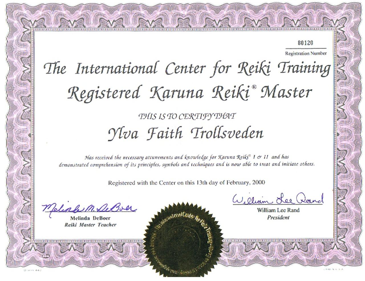 Jag, Ylva är initierad och Karuna Master direkt av William Lee Rand i Indien år 2000.