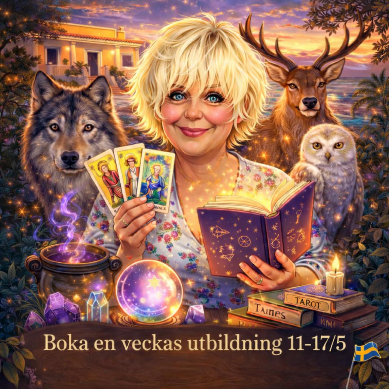 En hel vecka (11-17 maj) med allt som finns på Runhäxans Tarot = Tarot, Astrologi, Runor, Chakras och färger, kristaller och kraftdjur.